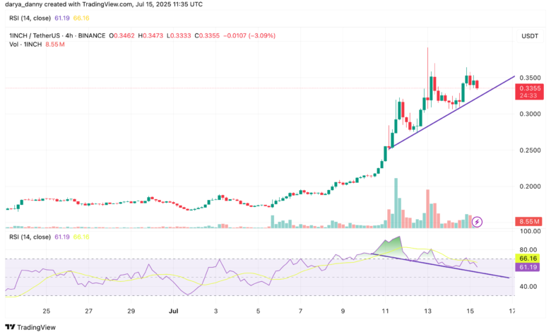 In terms of price action, the move appears to have been a breakout from a tight volatility compression range, but there doesn’t seem to be a clear catalyst to trigger the surge. However, the 1INCH rally coincided with a significant milestone for the 1inch ecosystem. On July 15, the 1inch team announced that 1inch Swap, the 1inch’s DEX aggregator tool, had surpassed $700 billion in total trading volume, reinforcing the platform’s growing dominance in the DEX aggregation space.