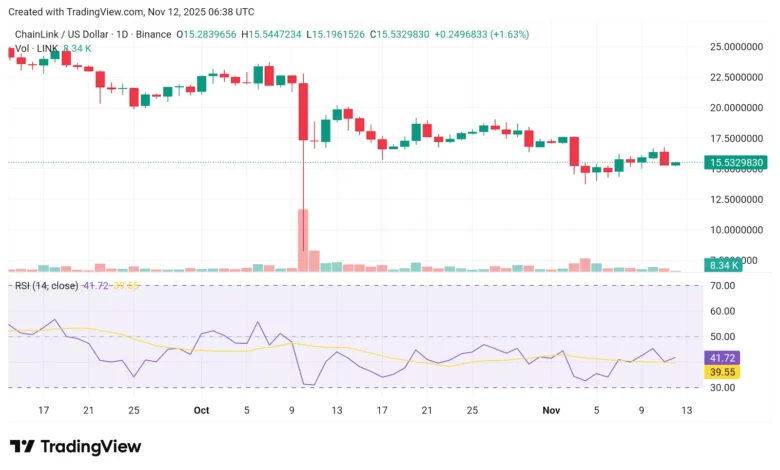 - LINK dropped 5% despite the news, trading at $15.52, indicating bearish market sentiment.