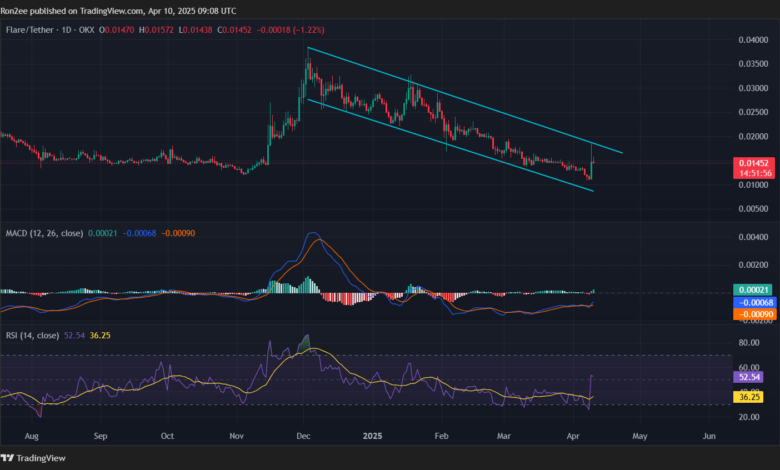 On the daily timeframe, FLR recently tested the upper boundary of a falling parallel channel pattern that had been keeping the altcoin in a downtrend since early December last year.