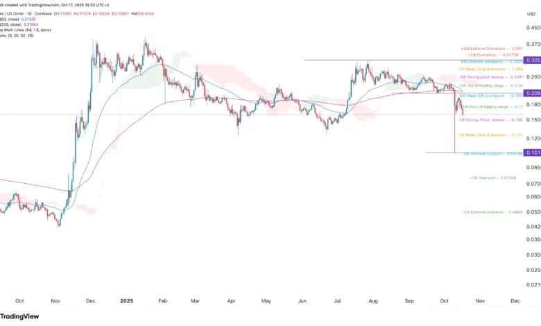 The daily chart shows that the Hedera price has plunged in the past few months. The HBAR token has dropped from a high of $0.3052 to the current $0.1600.