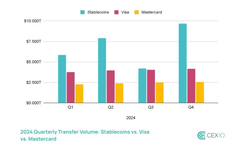 Stablecoin transaction volume has surpassed Mastercard’s | Source: CEX.io