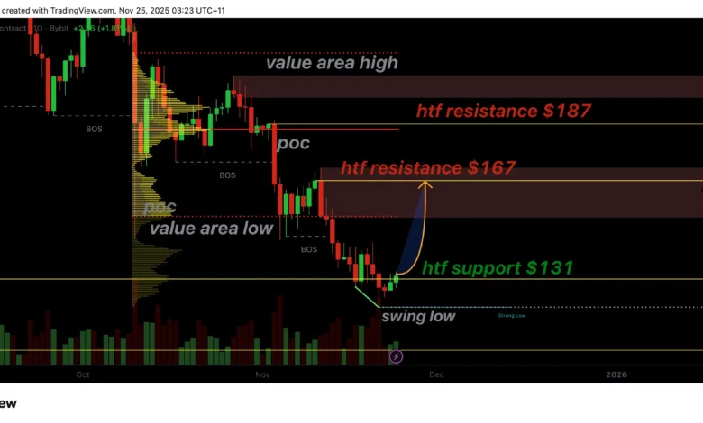 If this support continues to hold, the next key level to watch is the value area low. Reclaiming this region would signal that buying pressure is returning, and that Solana may be preparing for a rotation toward the next significant resistance at $167. This level aligns with high-time-frame resistance and has historically acted as a significant decision point for trend continuation or rejection.