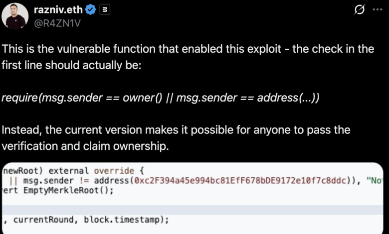 In particular, attackers targeted the RareStakingV1 staking contract, which suffered from a critical vulnerability in its code. Subsequent analysts showed that the RareStakingV1 contract had a bug that enabled anyone to pass the verification and take over the contract.