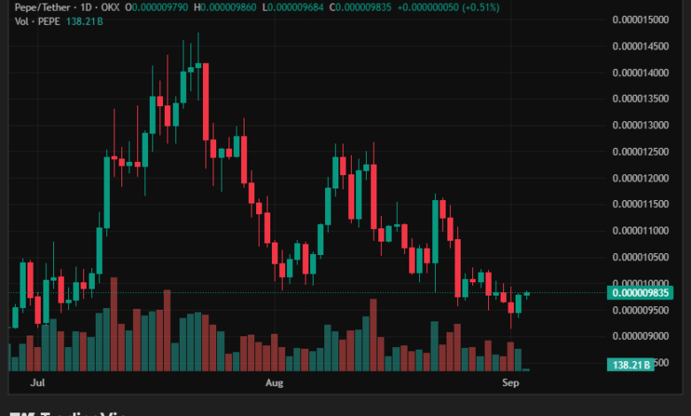PEPE price prediction discussions intensified as PEPE lingered around the high-$0.000009s in intraday feeds, with the market determining if this is a clean recovery or a deeper break.