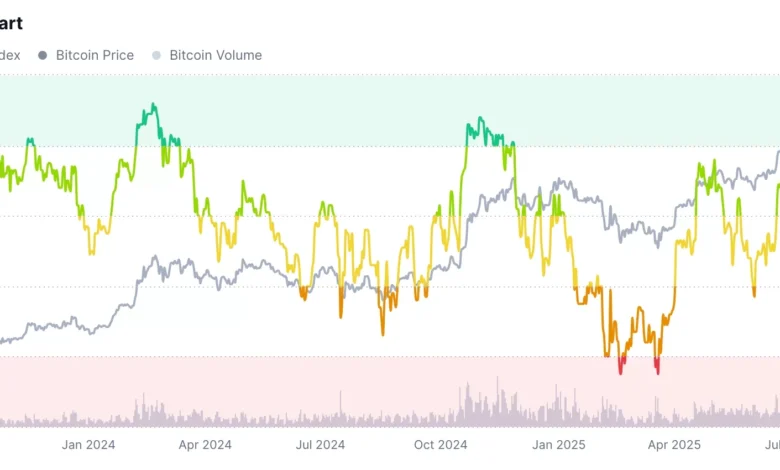 The Crypto Fear and Greed Index is calculated by looking at several data points, including price momentum of Bitcoin and other altcoins, volatility, derivatives market, and the relative value of Bitcoin in the market.